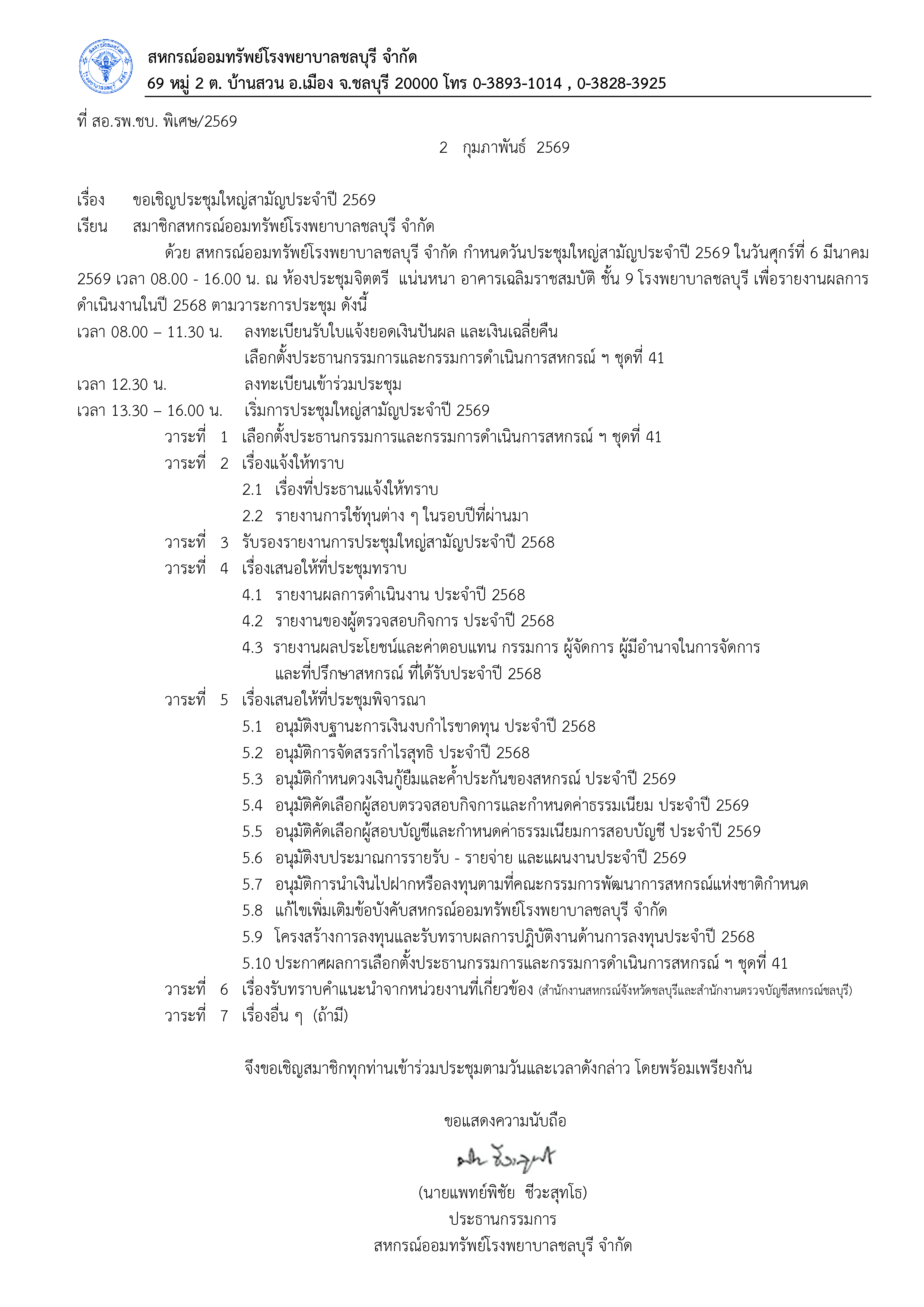 ขอเชิญประชุมใหญ่สามัญประจำปี 2569